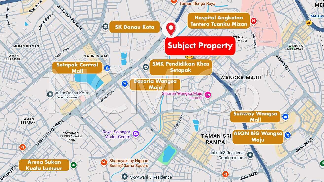 Vista Danau Kota Residensi is near to amenities such as shopping mall (The Palette, Aeon Danau Kota, Setapak Central Walk, VBIZ Mall, Platinum Walk, Wangsa Walk Mall, Aeon Wangsa Maju, Sembonia Festival Mall, M3 Shopping Mall), healthcare facilities(National Heart Institute, Columbia Asia Hospital Setapak, Hospital Pusrawi, Kuala Lumpur Hospital, Rampai Puteri Medical Centre, Gleneagles Kuala Lumpur, Hospital Tunku Azizah, Damai Service Hospital HQ), educational institutions(SK & SMK Danau Kota, SK Danau Kota 2, SK Taman Melati, SK Setapak, SJK(C) & SMK Chong Hwa, TARUC, Sri Utama International School, Malaysia Institute of Art), public transportations(Wangsa Maju,Taman Melati LRT Stations).