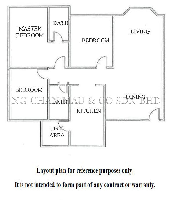 The built-up size of the unit measures approximately 800 sf in size which includes 3 bedrooms and 2 bathrooms with RM 50 maintenance fee.
